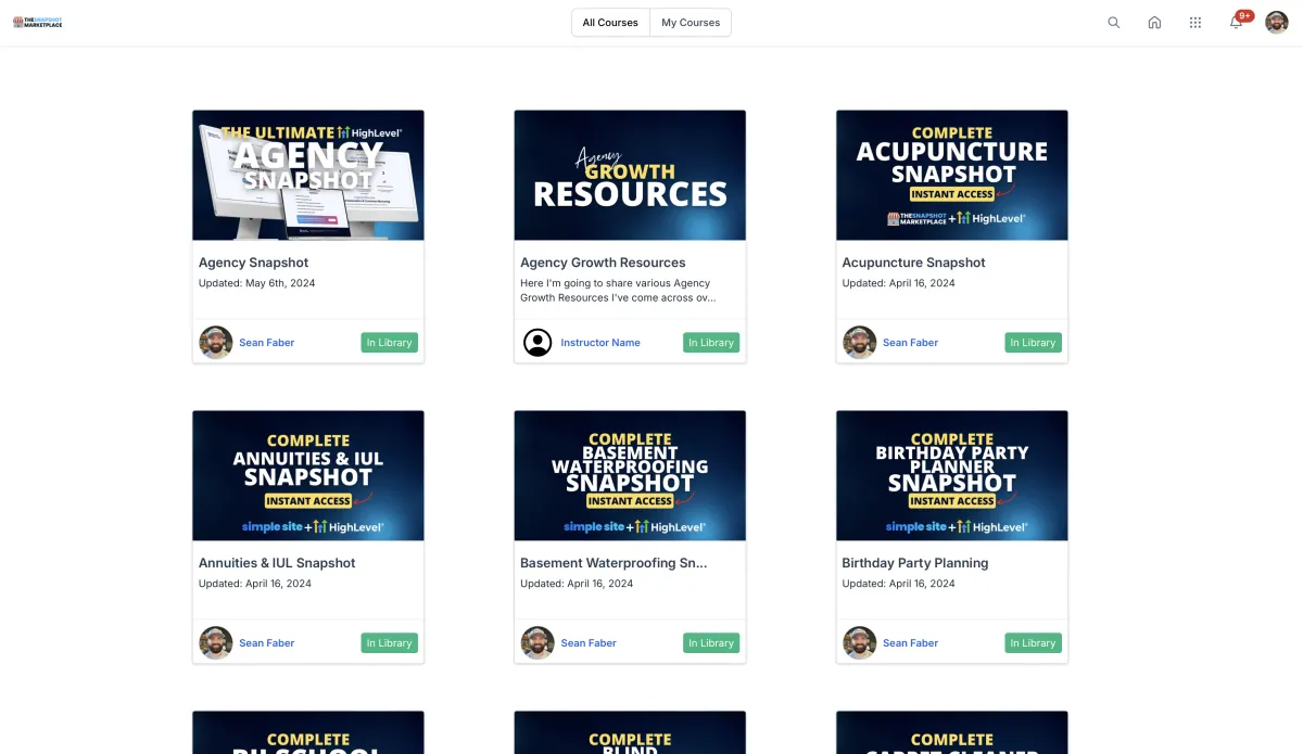 Login to your Snapshot Portal and pick from one of your 120+ industry specific snapshots. Each one has everything pre-built for you to add your finishing touches so you can start generating qualified leads as quickly as possible.